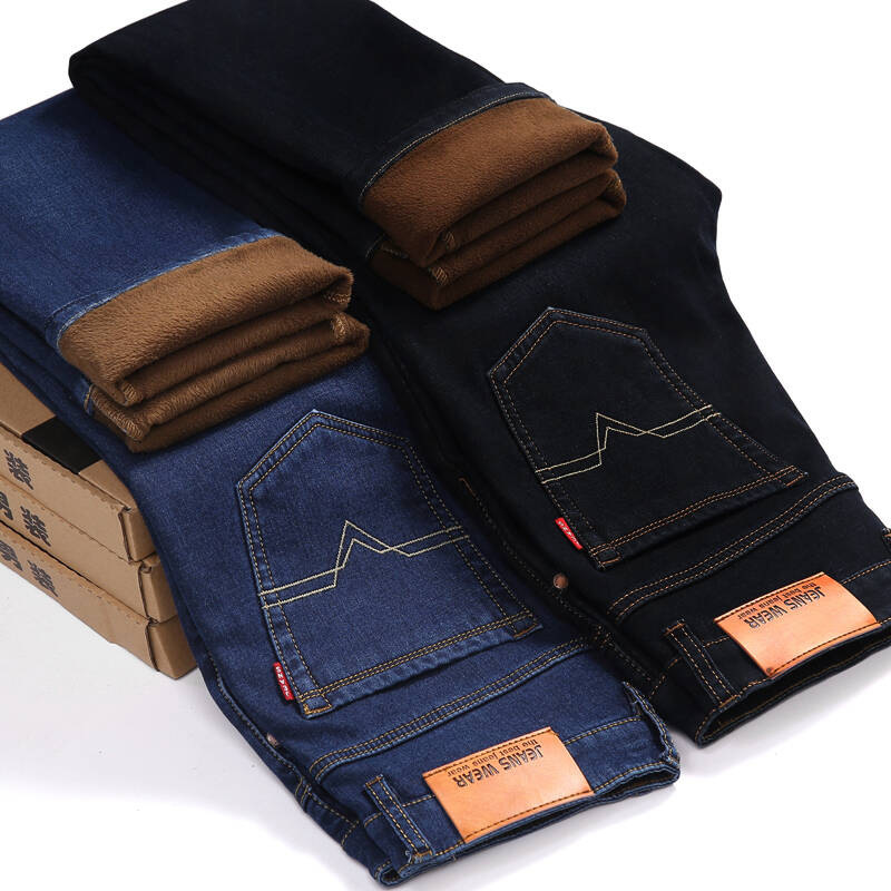 商务男裤子中年人冬天带绒休闲裤蓝黑色 .
