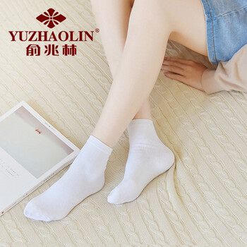 俞兆林袜子女中筒袜子白色运动纯棉学生袜子防滑四季袜五双白色中筒女袜