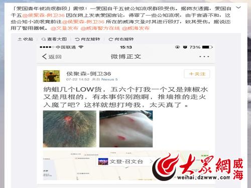 山东爱国青年被群殴疑似原因曝光 侯聚森