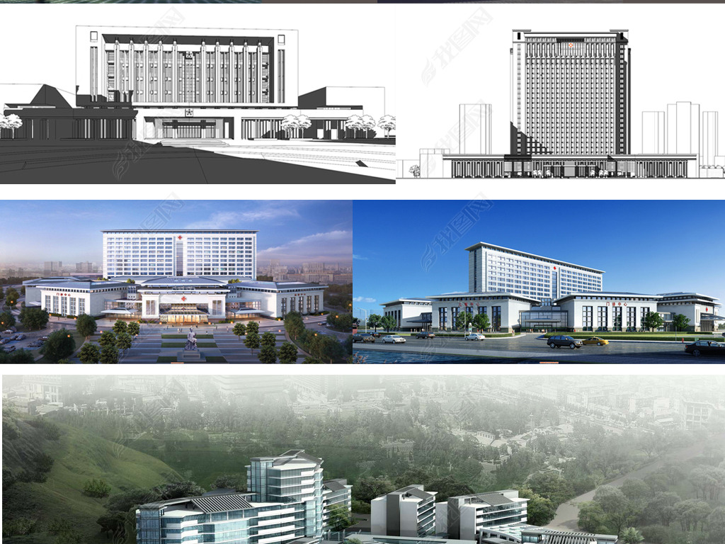 现代二甲县级人民医院建筑规划jpg方案SU设计模型[原创]