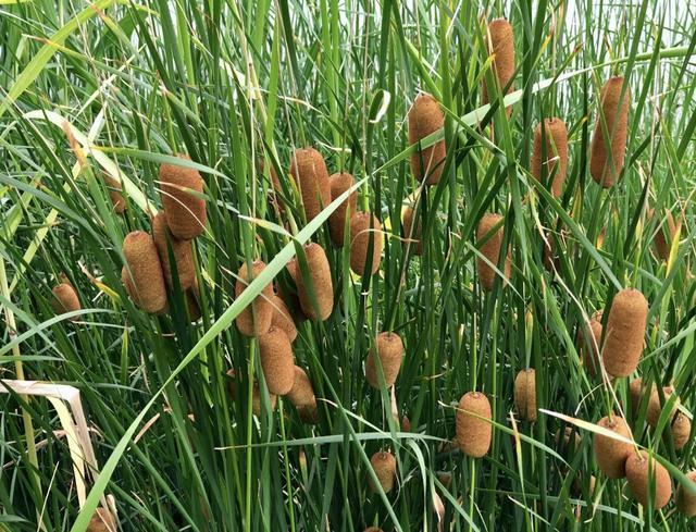 在池塘周围,生长着1种“香蒲草”,远看像“火腿”,奇特、珍贵