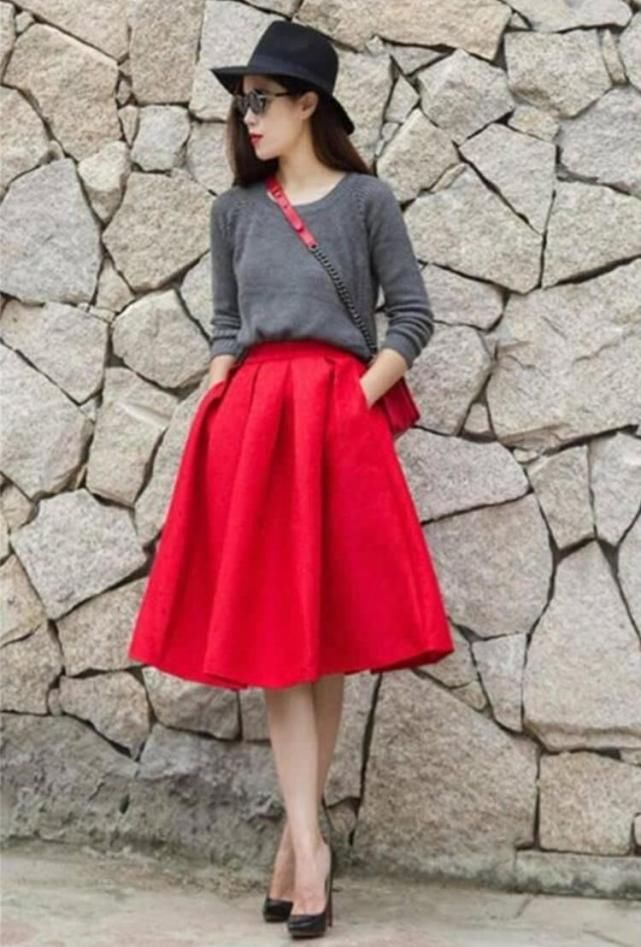 酒红色半身裙搭配】酒红色半身裙搭配提升