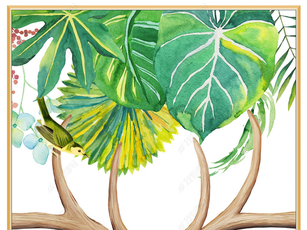 北欧现代梦幻森林麋鹿飞鸟三联装饰画无框画