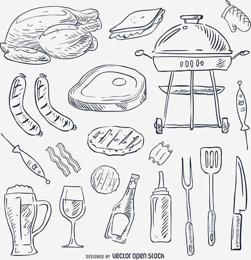 露营烧烤情景简笔画高清,露营烧烤情景画法