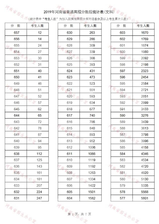 2013河南高考分数段排名统计表 2013河南