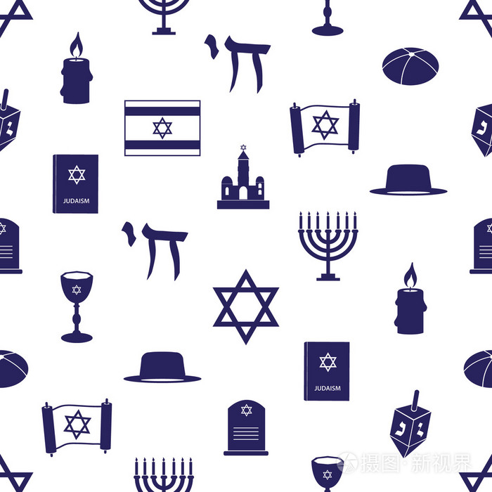 犹太教的宗教符号无缝蓝色图案 eps10