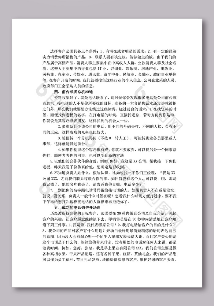 电话销售话术技巧模板免费下载_学科手抄