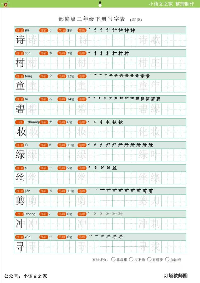 二年级(下)生字\/练字帖带拼音、笔顺可打印