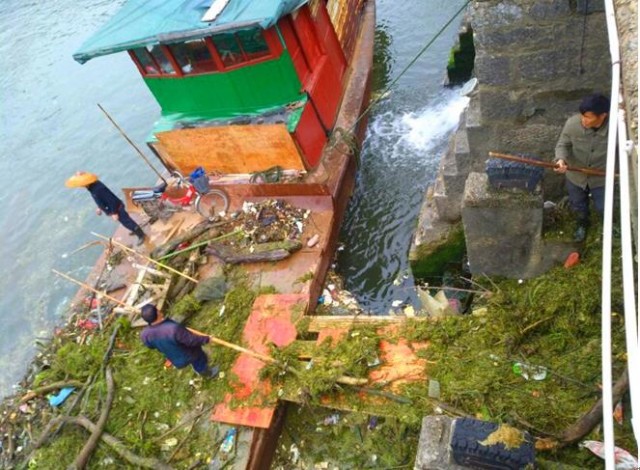 邵阳市邵水河拦河坝漂浮垃圾已清理打捞