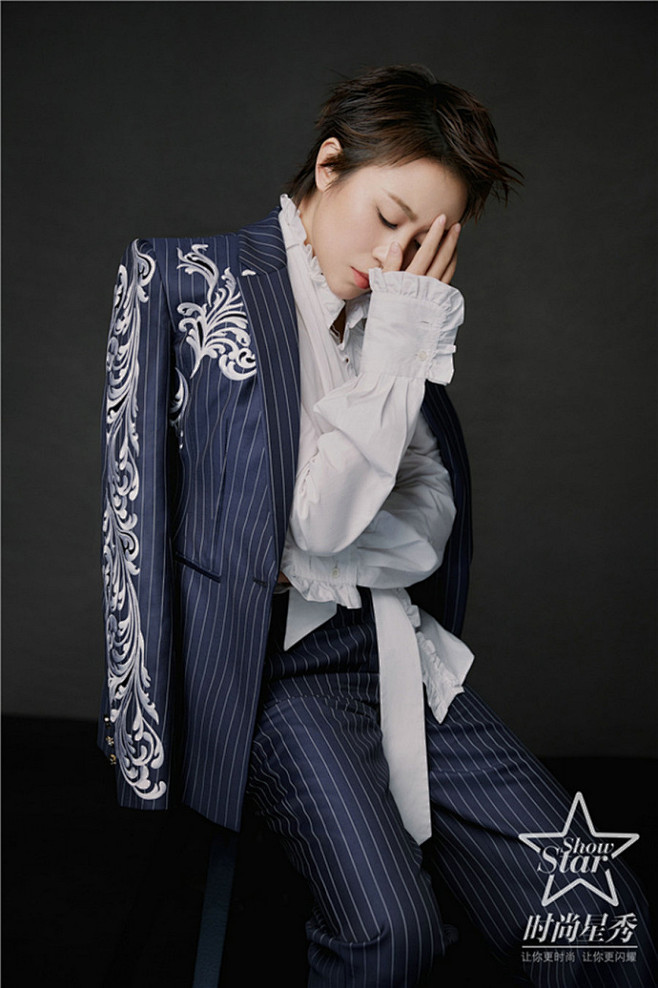 马丽时尚写真大片曝光 经典条纹西装诠释