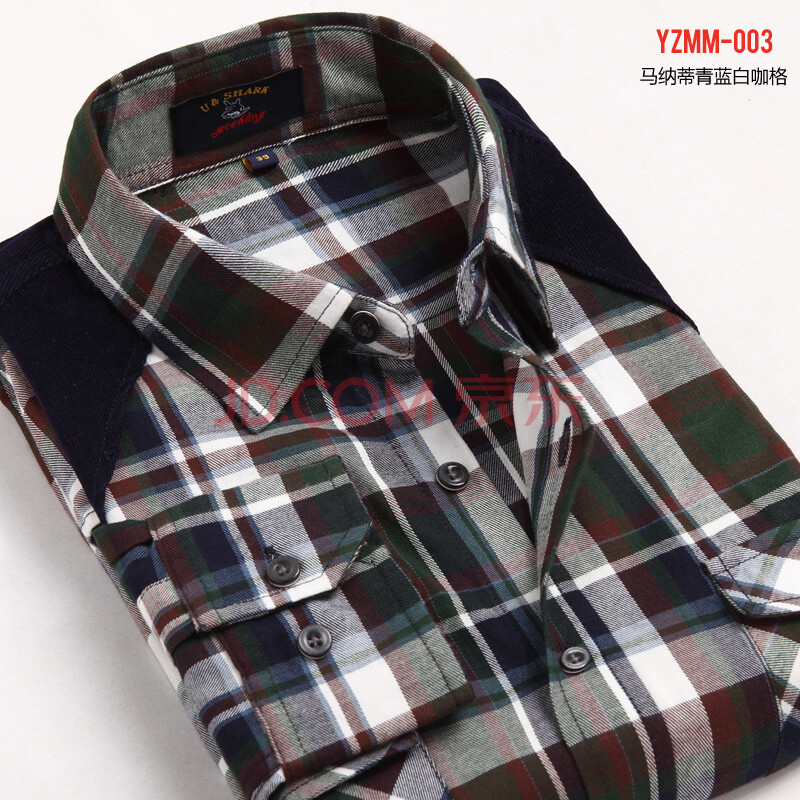 优鲨U-SHARK春夏男士格子磨毛保暖长袖