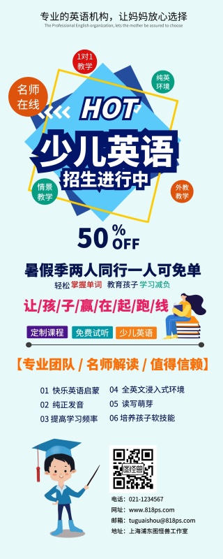 寒暑假少儿培训英语学习机构介绍易拉宝