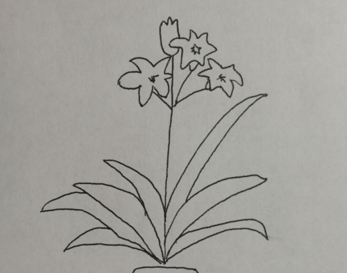 怎么画一盆带有花朵的君子兰卡通简笔画,