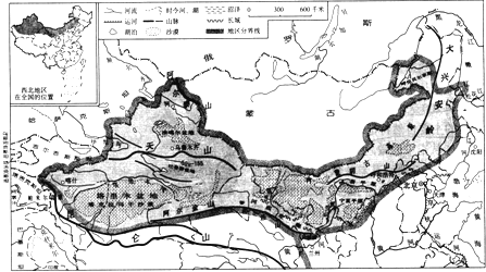 读西北地区略图及相关资料,完成下列问题.材料一:6月16日18时37分,“神舟九号”飞船在酒泉卫星发射中心发射升空.先后与天宫一号目标飞行器在轨成功进行了两次交