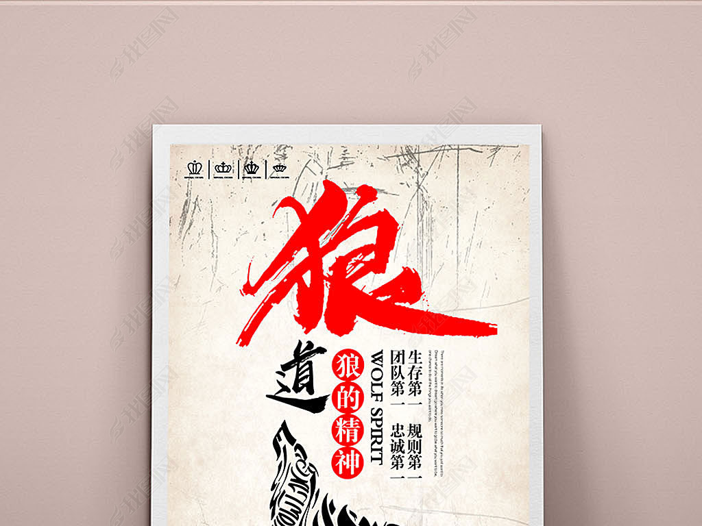 企业文化展板狼道精神专注励志挂画海报