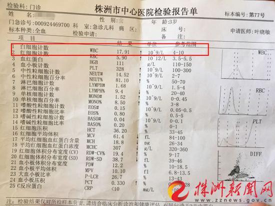 图3.株洲市中心医院检验报告单,白细胞计数普