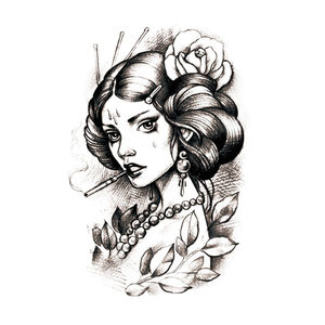 玫瑰花朵美女素描艺伎\/艺妓纹身贴 防水防汗大