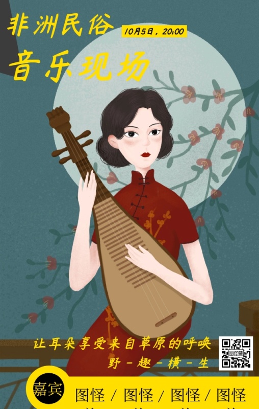 黑黄色民俗音乐表演手机宣传海报