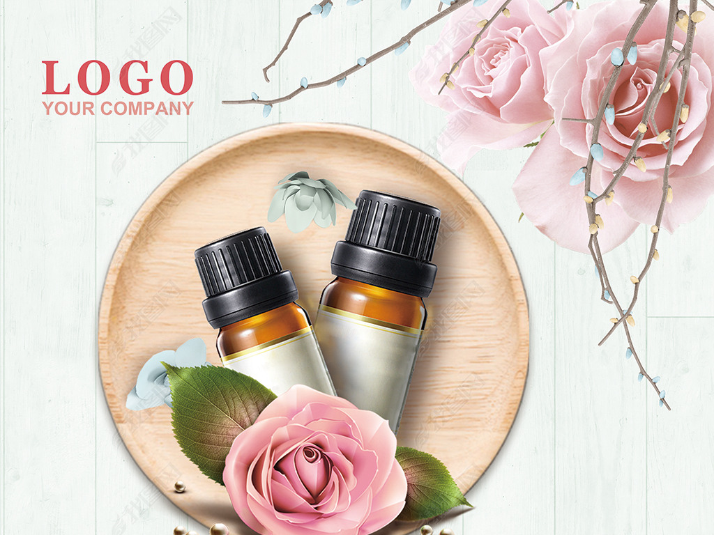 粉色玫瑰精油美容护理海报矢量图免费下载