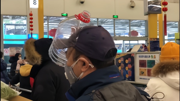 武装到眼睛!武汉大爷油壶自制防护面罩