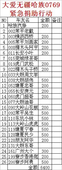 市卫生局帮扶低保困难家庭爱心捐款明细表