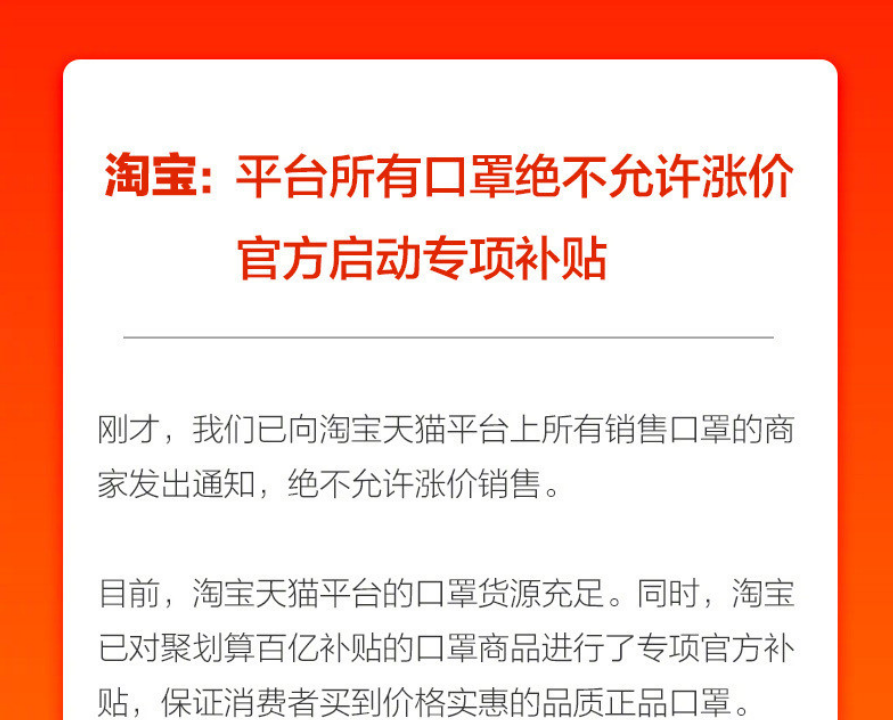 禁止口罩涨价 淘宝、苏宁等电商平台纷纷