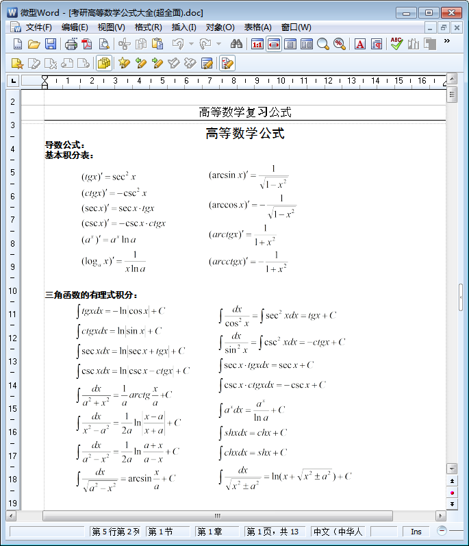 微积分公式 汇总 高等数学公式 汇总 (最齐全的数学公式)