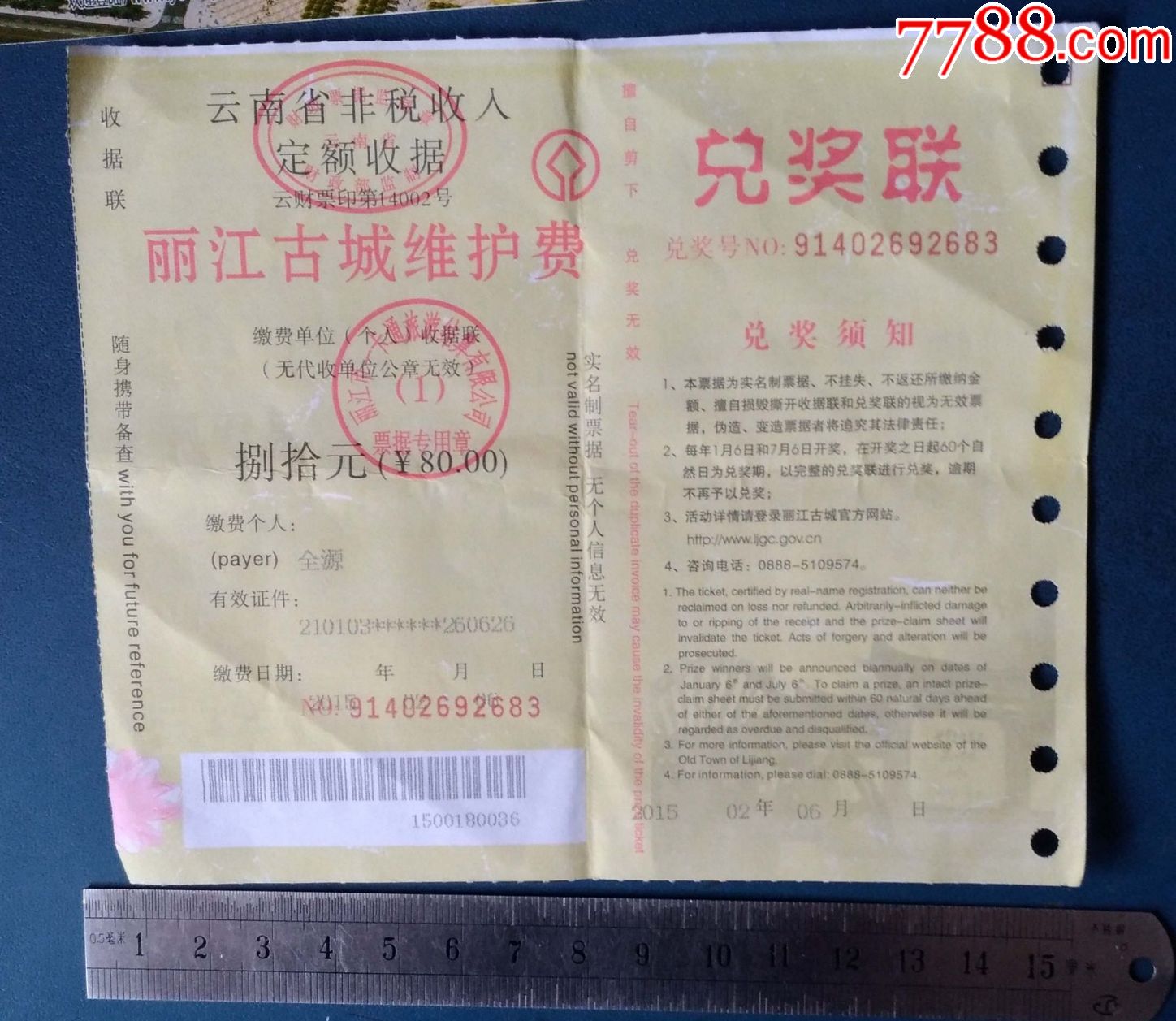 兑奖联--丽江古城维护费的.-彩票\/奖券-7788