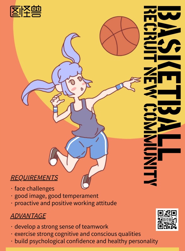 卡通风格篮球英语社团招新海报