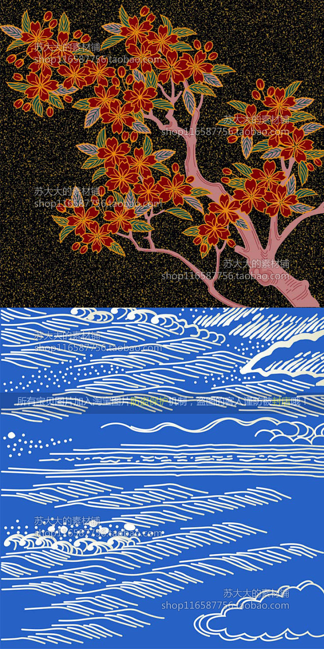 470张高清日本和风纹理平铺图案花边 浮世绘 可印刷地板砖素材