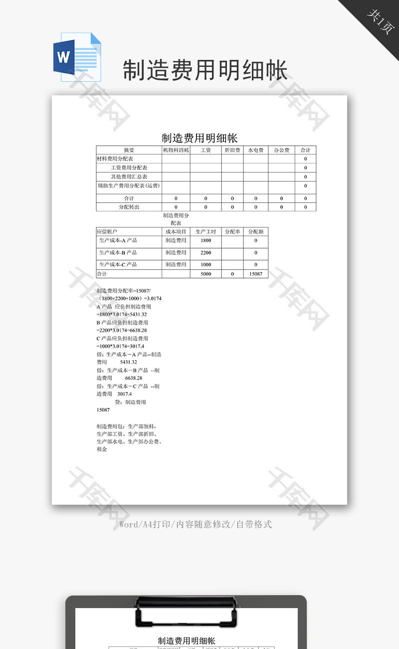 制造费用明细帐word文档