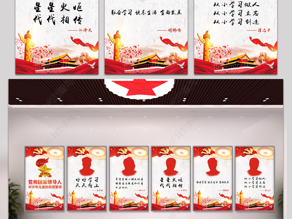 红色五代领导人对少先队的要求学校名言展板