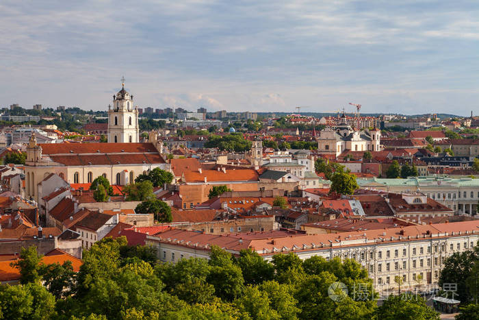 旧镇维尔纽斯从 Hediminas 城堡,立陶宛,夏天时