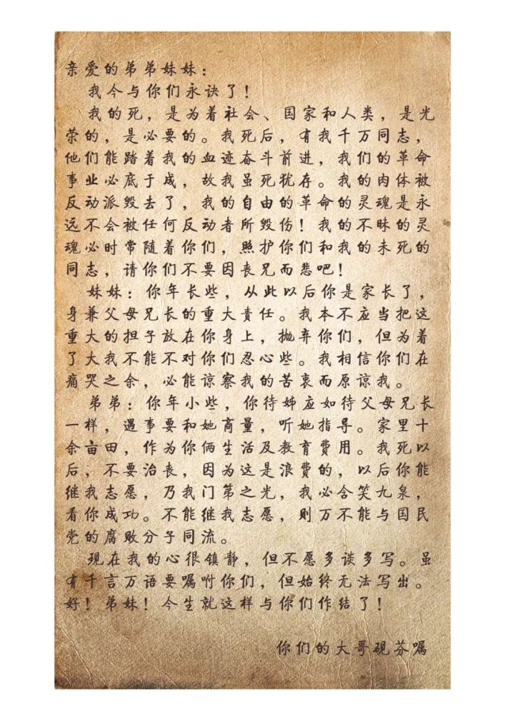 “我们的革命事业必底于成” --史砚芬给弟弟妹妹的诀别信(2图)