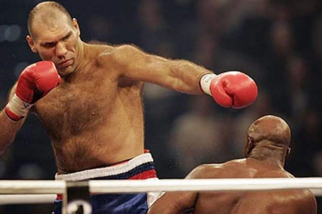 霍利菲尔德戏耍7英尺拳王,结果却遗憾落败,