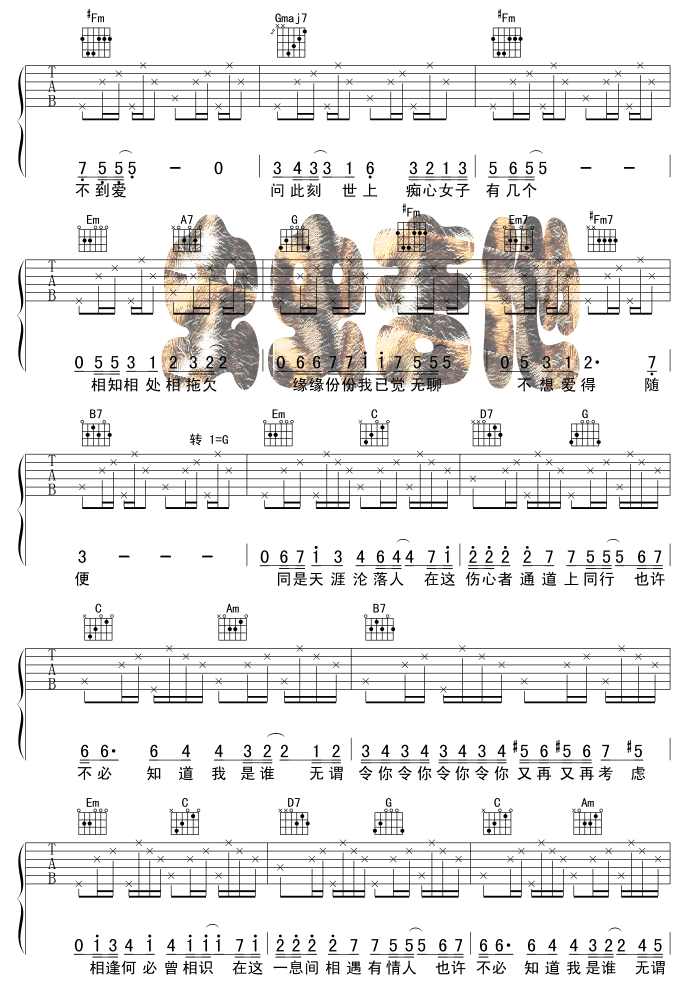 相逢何必曾相识调六线吉他谱-虫虫吉他谱