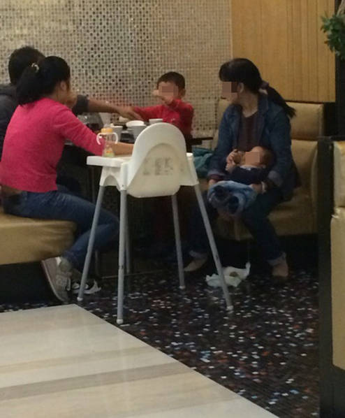 女子带小孩在商场餐厅内大便-商场|餐厅|