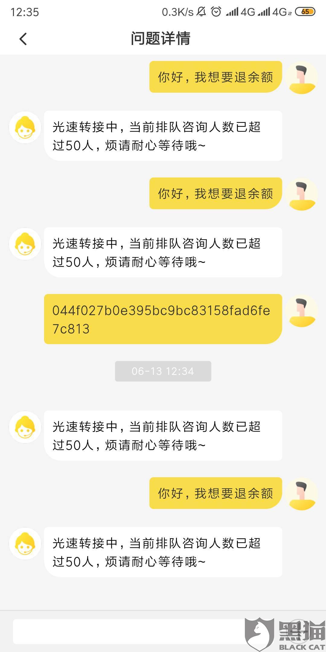 黑猫投诉:ofo小黄车无法进行余额退款操作