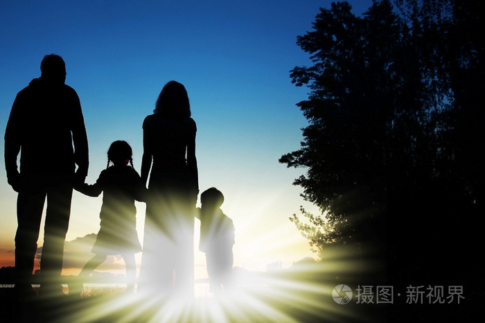 父亲和女儿在夕阳下的剪影