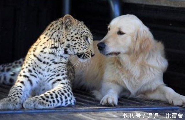 主人收养一只小豹子,让狗狗陪伴豹子一起