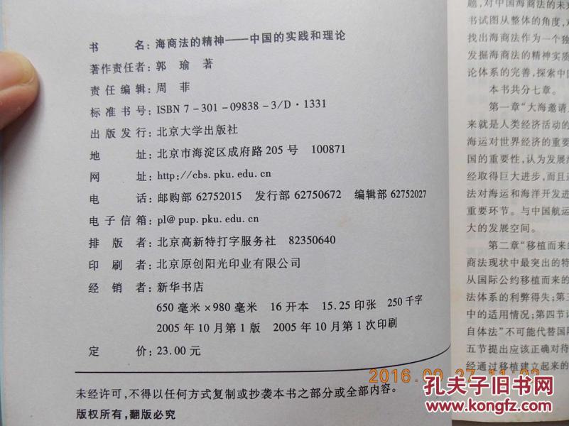 海商法的精神-中国的实践和理论;郭瑜;北京