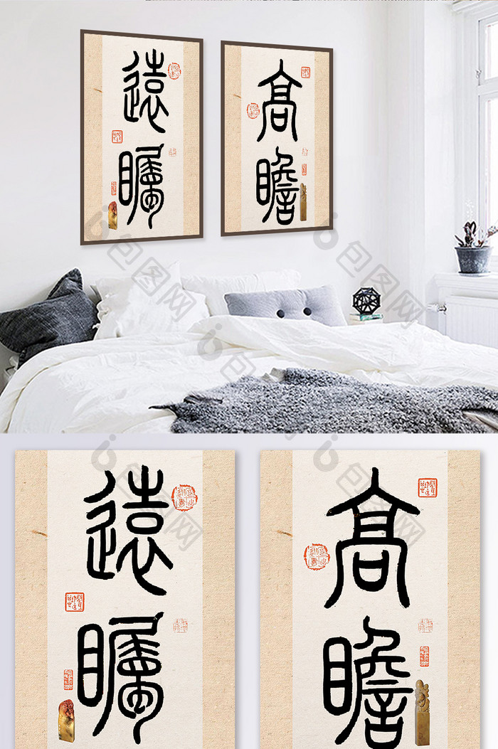 中国风书法篆书高瞻远瞩毛笔字装饰画