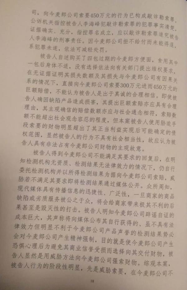 男子向今麦郎索赔450万 被指敲诈获刑8年