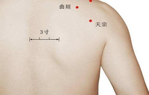 、胸痛、乳房痛、乳汁分泌不均按天宗穴