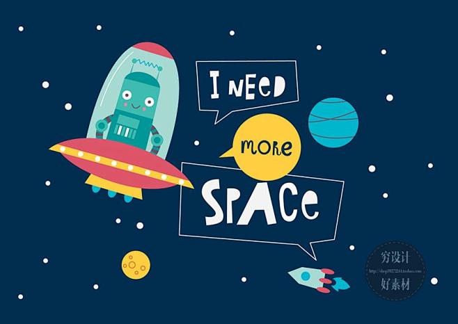 矢量卡通扁平化外太空宇宙星球探索飞船