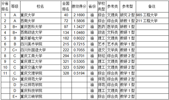 2019重庆市大学排名10强发布,重庆大学第1