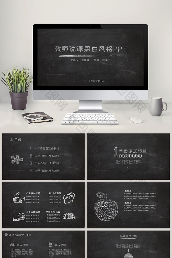 黑板风格粉笔字课件教学PPT模板免费下载