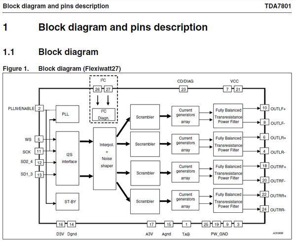 有谁知道TDA7801功放IC功能引脚作用,请