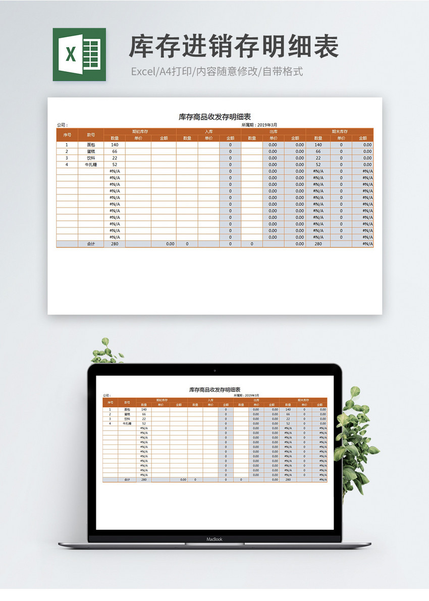 库存商品进销存明细表Excel模板