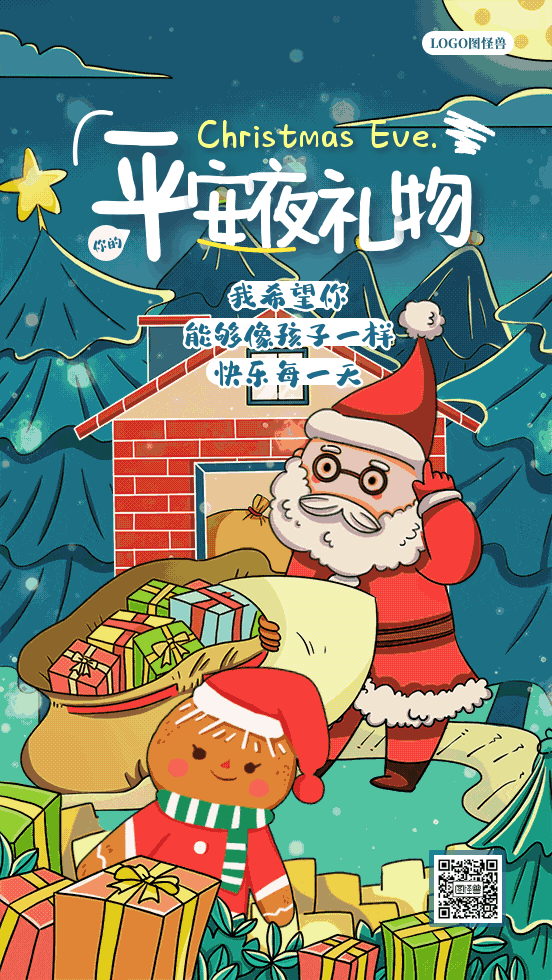 手绘圣诞节平安夜圣诞礼物动态GIF模板
